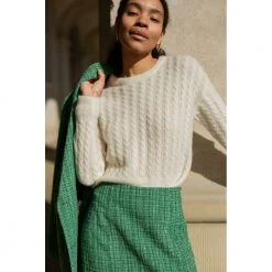2-Biz Strikket Mønsterstrikket Genser Med 3/4 Erm (Knit Blouse) Pink