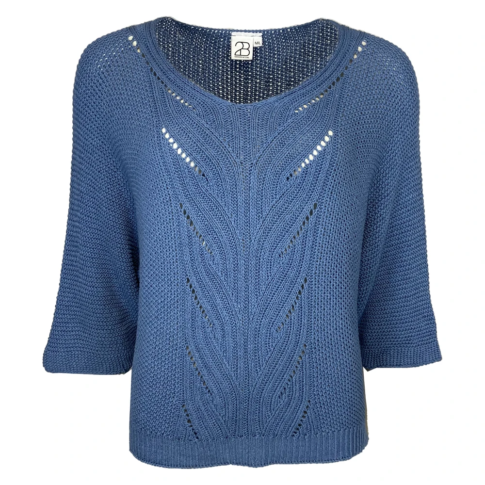 3/4 sleeves knitted blouse rib knit at waist and sleeve ends. In addition, fine details in the middle of the blouse. QUALITY: 50% COTTON / 50% ACRYLIC