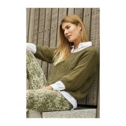 2-Biz Cashew Strikket Mønsterstrikket Genser Med 3/4 Erm (Knit Blouse) Green