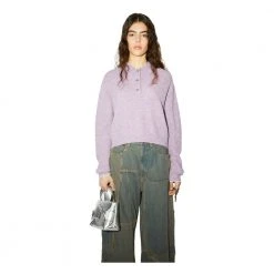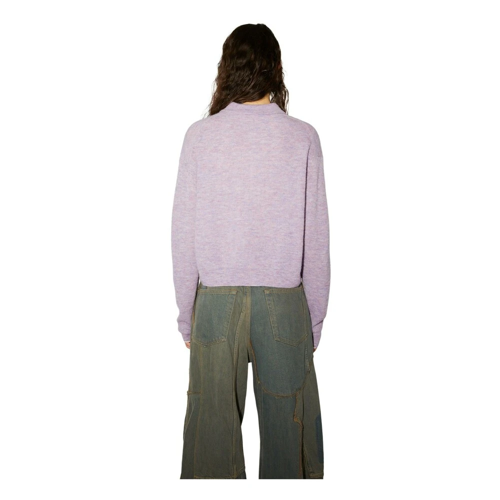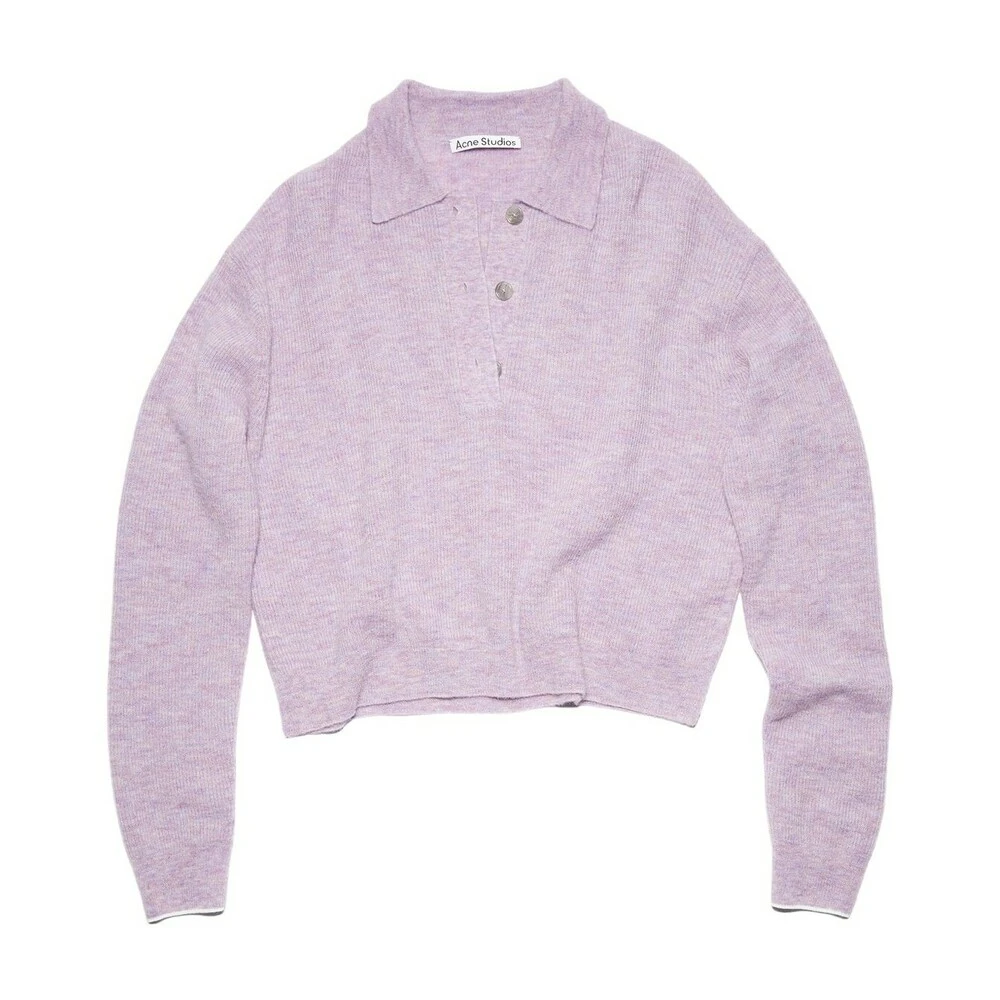Acne Studios violet pink knit sweater features a polo button-up detailing, crafted from a soft alpaca blend and cut to a relaxed fit. Soft alpaca blend with Polo shirt style Button-up Style ID: FN-WN-KNIT000457 Relaxed fit Model is 178cm/ 511