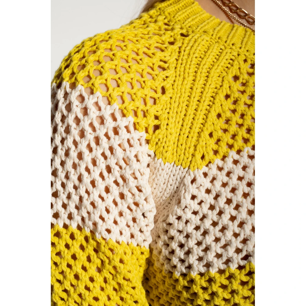 Gul og krem ​​‘Lou’ ren crewneck -genser med lange ermer fra Allsaints. Laget av bomull.