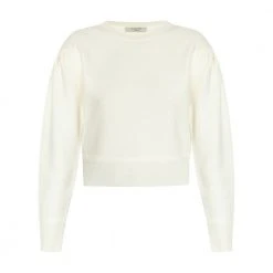 Krem ‘Vika’ genser fra AllSaints. Denne designen er laget av ull, og har en rund hals, lange puffhylser og ribbestrikk.