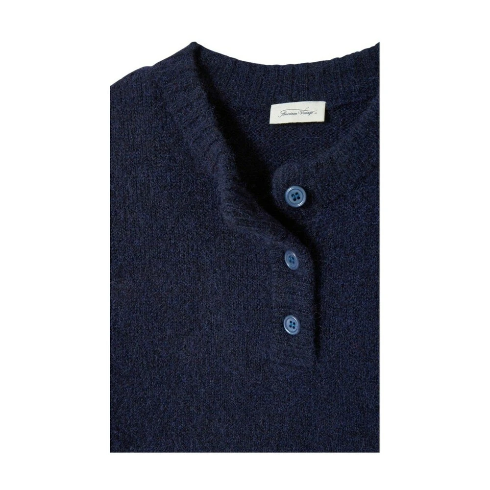 Nydelig genser fra American Vintage med knapper i halsen. Lange ermer med krage. Klassisk og anvendelig til din garderobe. 35 % akryl, 31 % alpaca, 22 % polyamid, 11 % ULL, 1 % elastane