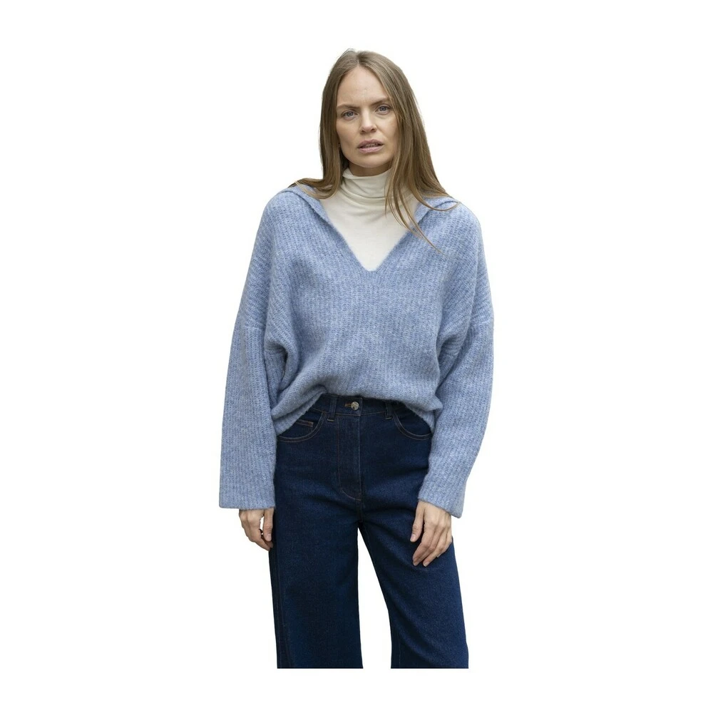 Arnie Says – Brie Klassisk, vintage-inspirert strikket genser med v-hals og krage. Genseren er noe overdimensjonert bĂĄde i kropp og ermer. Modellen er designet med nedfalne skuldre og kan gjerne kombineres med en lett pologenser under for de mer kjølige dagene. Se Desi Wool. Myk deilig kvalitet. 16% Mohair 42% Ull 40% Nylon 2% Spandex