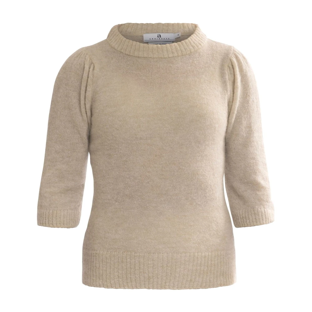 Nydelig myk strikk i søt genser med 3/4 arm med liten puff.