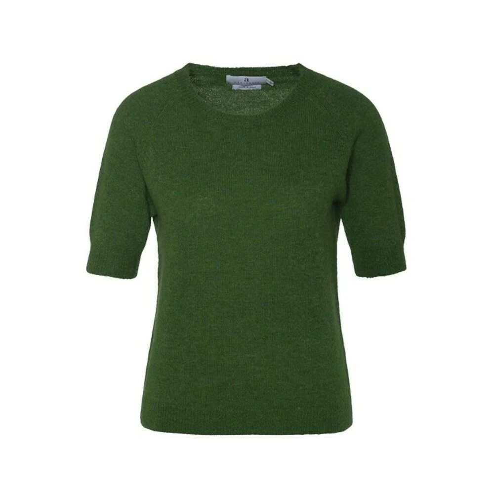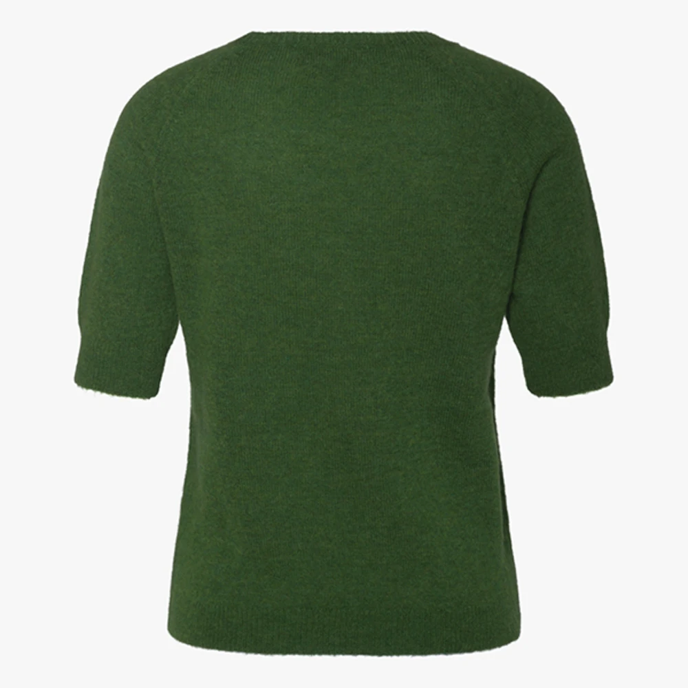 Nett og anvendelig strikkegenser med korte ermer. Modellen har rund hals og rett fasong. En klassiker fra Arnie Says. Deilig og myk basisplagg i alpakka ullblanding. Her kan man for eksempel slenge på et par jeans. Finnes også i sort, lilac og royal blue. Normal i størrelsen. Mulig å gå opp eller ned en størrelse avhengig av hvilken passform man ønsker. Detaljer: Modell: Georgina Farge: Green Materiale: 50% Alpakka, 22% Ull, 28% Polyamid Vask: Maskinvask 30 grader på ullprogram