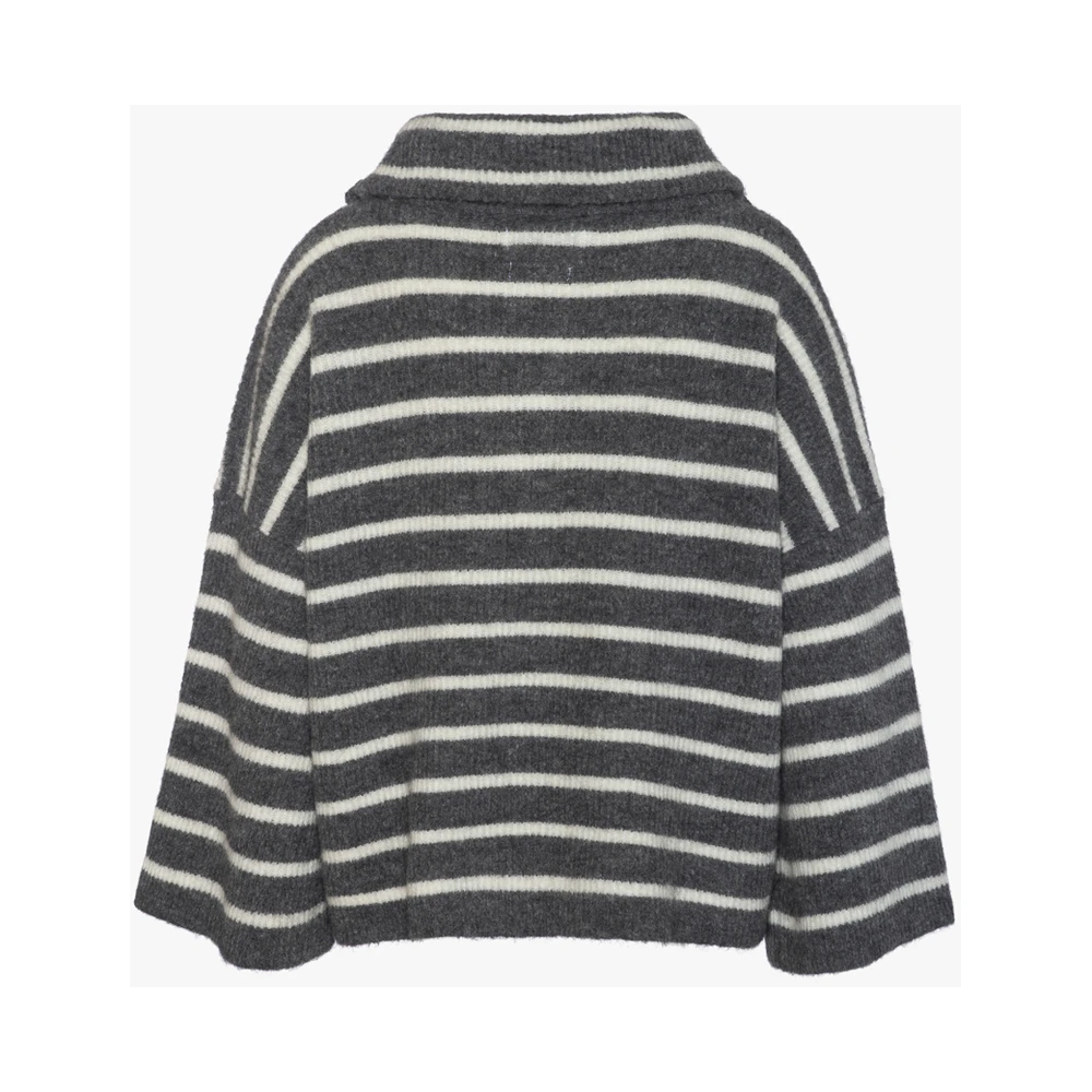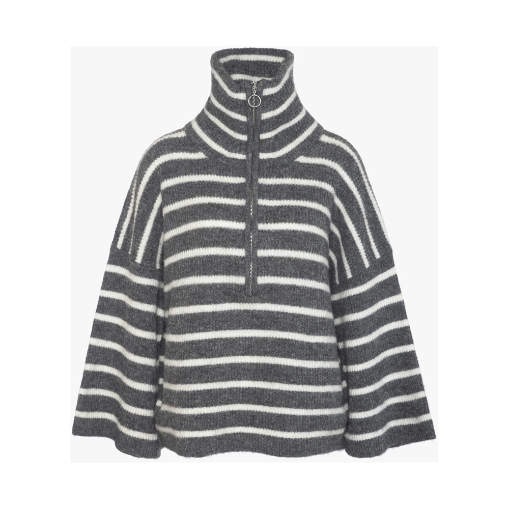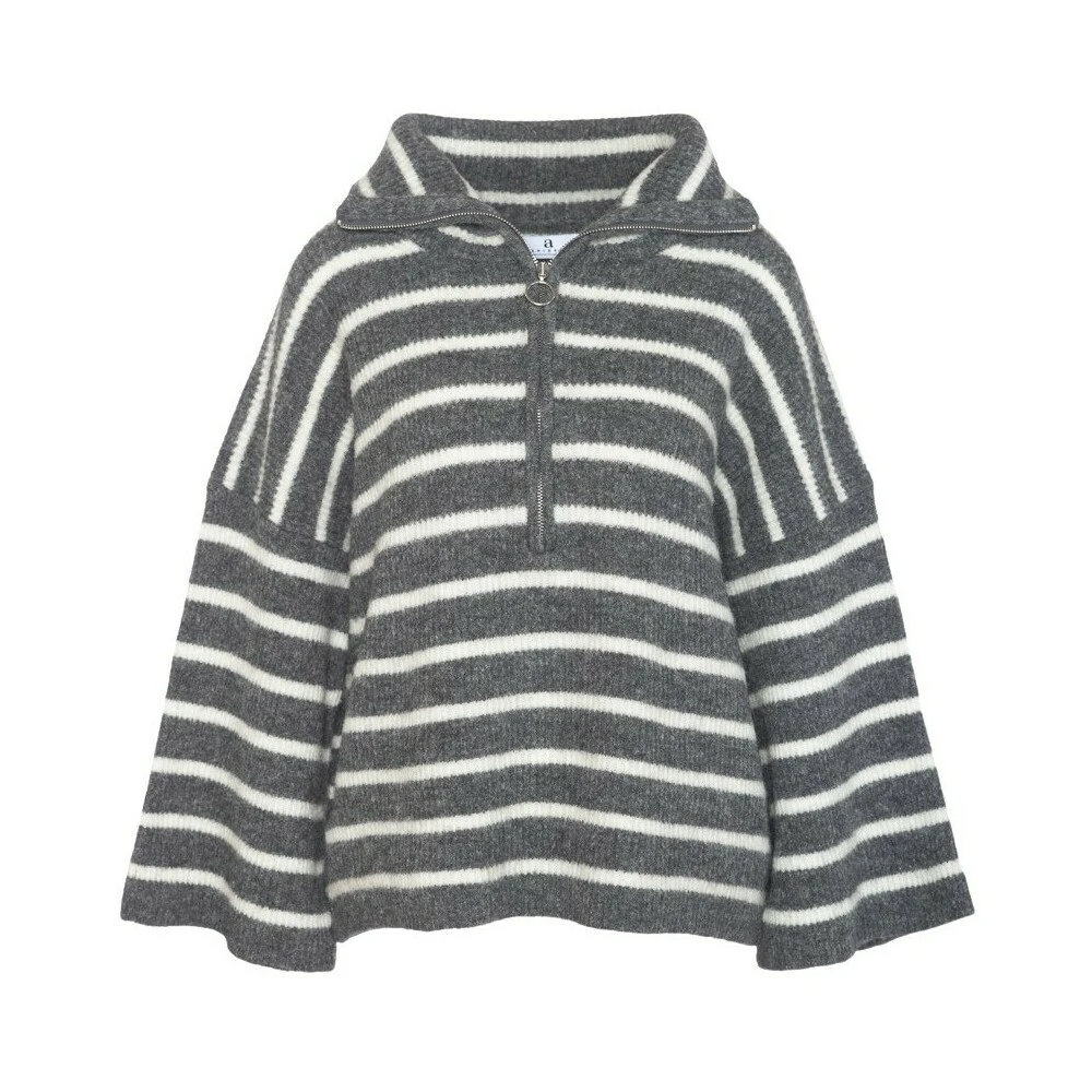 Arnie Says – Casimir Stripe Genser i en lettvektig, men grovvevet alpakka-ullmix. Kraftig krage med halfzip, nedfalne skuldre med vide ermer. Modellen er boxy og rett i fasongen. Noe oversized i størrelsen. 47% Polyamid 30% Ull 20% Alpakka 3% Elastan