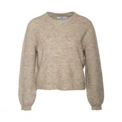 Sally fra Arnie Says er en genser med ribbete detaljer og rund hals. Inneholder: 35% ull, 15% kid mohair, 47% nylon, 3% spandex. Farge: Lys brun melert.
