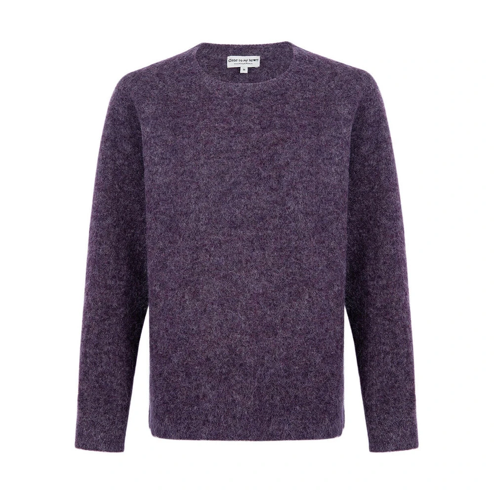 Type: Sweater knitted Quality: 34%Kid Moihair 34%Wool 27%Polyamide 5%Elastan Description: Modellen er 180 cm høy og viser str M. En av våre absolutt mestselgende gensere i mykeste kid mohair- ullblanding, i sesonger nye farger og kombinasjoner. Loose fit, og 8 cm lenger bak enn foran.