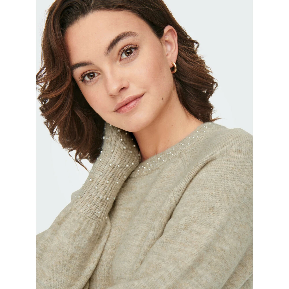 Onlalexis l/s bead pullover fra Only ! Genser med perler rundt halsen og pÄ mansjettene ved ermene. Genseren har rund hals, rett og lÞstsittende passform med bred ribbestrikket kant nederst og ved ermene. Fin melert farge. Normal i stÞrrelsen. Kvalitet: 75% acryl, 22% polyester, 3% elastane Vaskes i maskin pÄ 30 grader med skÄnsomt vaskemiddel. Ikke bruk skyllemiddel eller tÞrketrommel. 15267952 pumice stone/w.melange