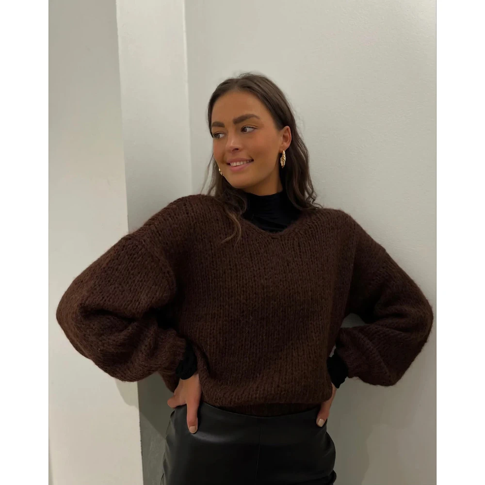 Beskrivelse – HĂĄndstrikket utseende – Oversized – V-hals Materiale 57% Polyester – Recycled 43% Polyester Farge Classic Green Vaskeinstrukser 30°C mild fine wash, Do not bleach, Flat drying, Do not tumble dry, Iron at low temperature, Do not dry-clean