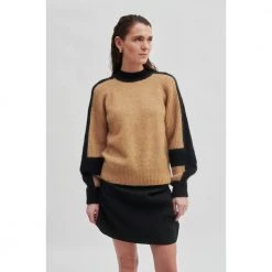 Bera knit t-neck fra Second Female ! Nydelig genser i en nydelig kvalitet. Genseren har regular og rett passform og er romslig / normal i stÞrrelsen. Kvaliteten er supersoft. Bruk den gjerne til et par vide dressbukser eller til en kul skinnbukse. Kvalitet: 34% mohair, 34% ull, 27% polyamid og 5% elastane Vaskes i maskin pÄ kaldvask med skÄnsomt vaskemiddel. Ikke bruk skyllemiddel eller tÞrketrommel. 56081 new tobacco brown