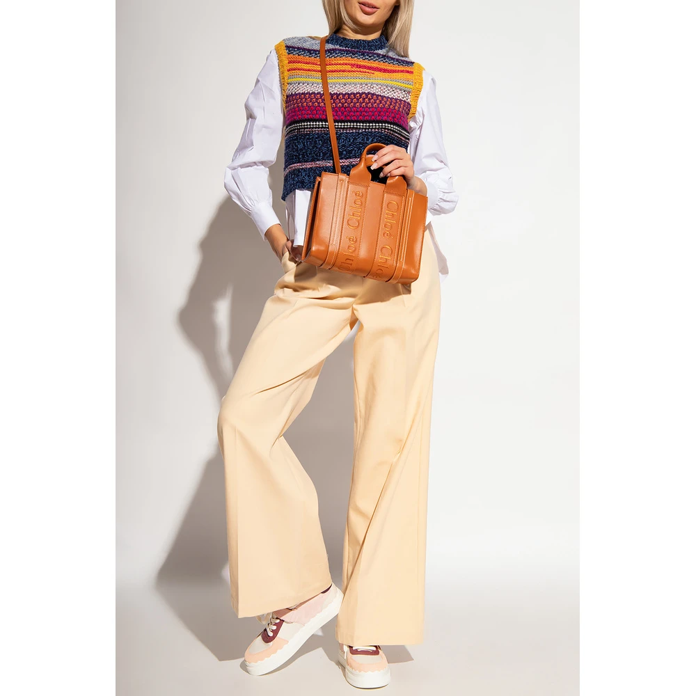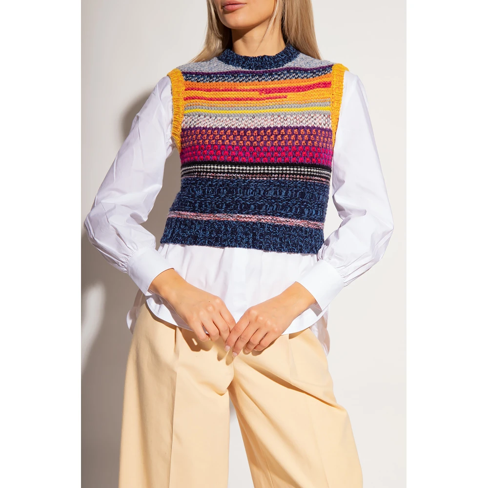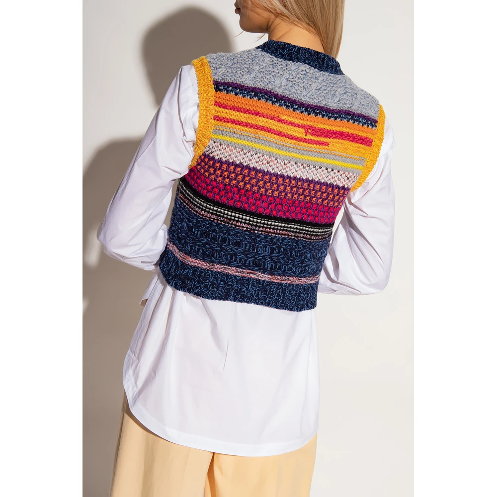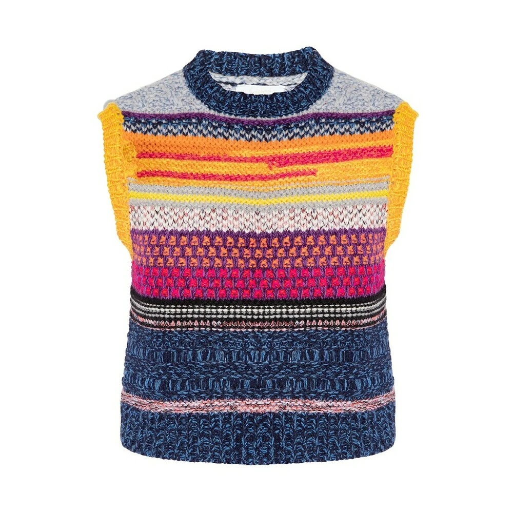 Flerfarget vest med en rund hals fra Chloé. Dette plagget er laget av en kashmir- og ullblanding, og har et dekorativt mønster og ribbet kanter.
