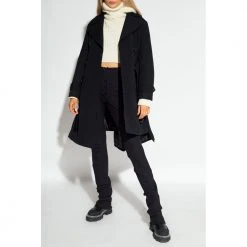 Krem turtleneck -topp med hette fra Comme des Garcons. Denne stilen er vevd fra ull, og har en beskÄret passform, en tett krage og lange ermer.