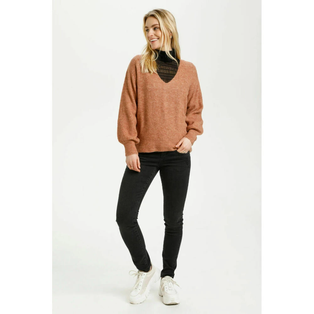 Nydelig strikket V- Genser fra Cream med V -hals i fargen Mocha Mousse. Finnes i flere farger. Lengde i st. M: ca. 61 cm.