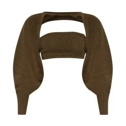 Mørkegrønn ‘Sally’ topp fra Cult Gaia. Denne stilen er laget av en bomullsblanding med en beskåret Bandeau -silhuett, og har festet lange ballonghylser med elastiske mansjetter.