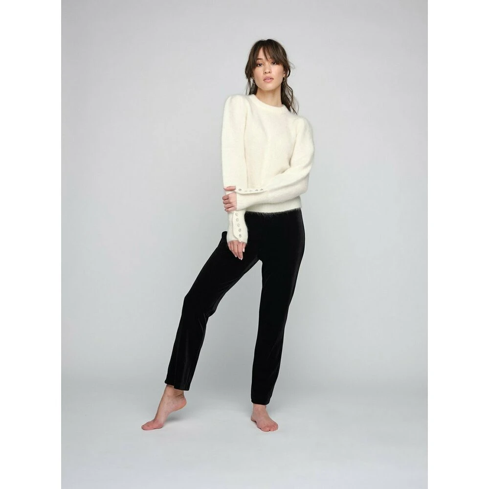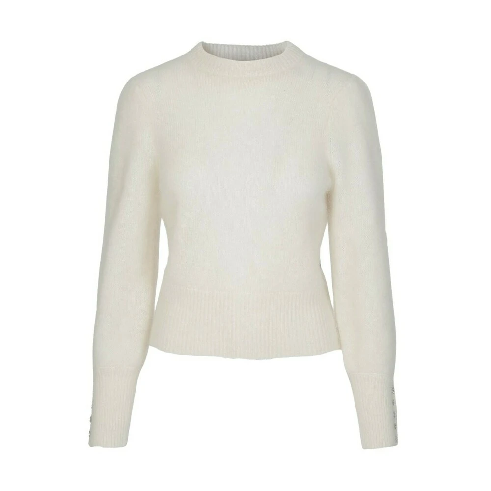 Beskrivelse: “Whitney Mohair Sweater” er en nydelig genser fra Ella ; Il. Den har en fantastisk myk strikk, i børstet kvalitet. Genseren har runde høyhalsede vakre ermer med dekorative knapper nederst på ermene. Den er vrangbordstrikket i vrangbord.
