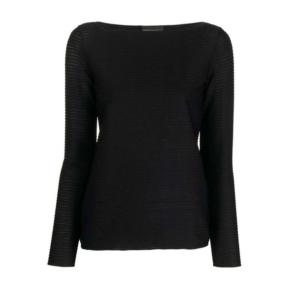 Emporio Armani Gensere svart ribbet langermet topp fra Emporio Armani med jet-svart, fin ribbet, rund nakke og lange ermer.