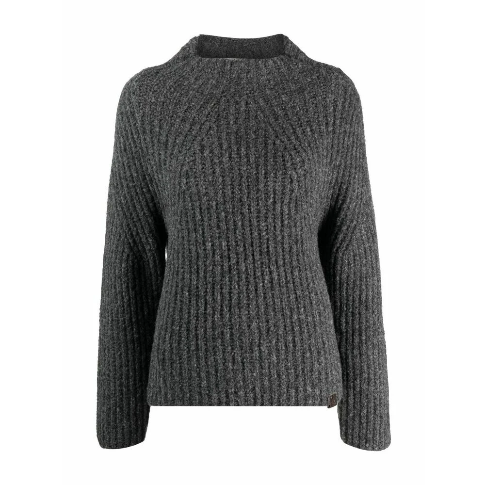 Emporio Armani Gensere Gray Mock-Neck Virgin-Wool Jumper fra Emporio Armani med grå, jomfruelige ullblanding, tykk strikk, hånlig hals, slipp skulder og lange ermer.