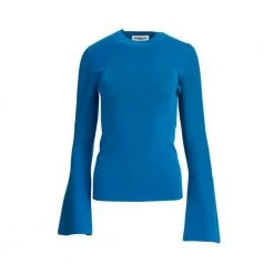 Smal lekker genser i tett ribbestrikk med trompetarmer. 63% Viskose 37% Nylon