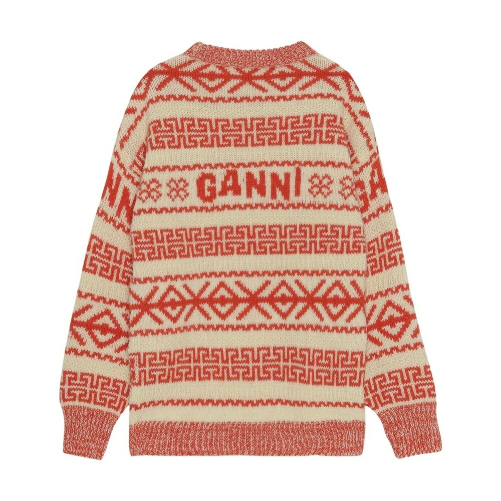 Genseren er laget av 100% certified organic wool, med crew neck-hals, ribbekant og vevd GANNI-logo. Designet for en avslappet passform over hele kroppen Velg den normale størrelsen din for å oppnå modellutseendet. De som er mellom to størrelser, eller med en mindre kroppsfasong, kan vurdere å gå ned én størrelse for en tettere passform Myk strikk i ullblanding Rebeca er 178 cm høy og bruker størrelse XS 100% certified organic wool Slip-on-stil, ingen lukking Med GANNI logo Produseret i: Italia
