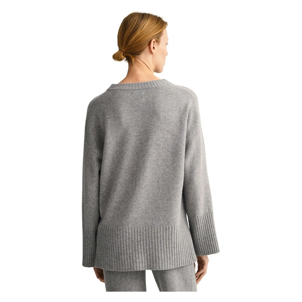 D1. Lounge C-Neck Sweater fra Gant. Deilig strikkegenser laget i en blanding av ull og kashmir. Genseren har rund hals, hĂžy splitt nederst og er strikket med vrangbordsdetaljer ved de vide ermene. Strikkegenser Avslappet passform Crew neck HĂžye ribbede detaljer pĂ„ ermer og nederkant HĂžy splitt nederst Materiale: 90% Ull, 10% Kashmir Om merketGant ble startet i 1949 av Bernard Gantmacher, med en visjon om Ă„ skape skjorter i uovertruffen kvalitet med skreddersĂžm som rĂžd trĂ„d. I dag er de kjent for sine tidlĂžse klassikere du kan bruke sesong etter sesong. Merket er kanskje mest kjent for deres âpreppyâ klesstil. Dette er en stil som kombinerer en velkledd og eksklusiv, men likevel sporty og avslappet stil. Gant er i dag elsket av folk over hele verden, og selv om de har beholdt samme stil gjennom alle disse Ă„rene, er de fortsatt like populĂŠre i dag som de var for 20 Ă„r siden.