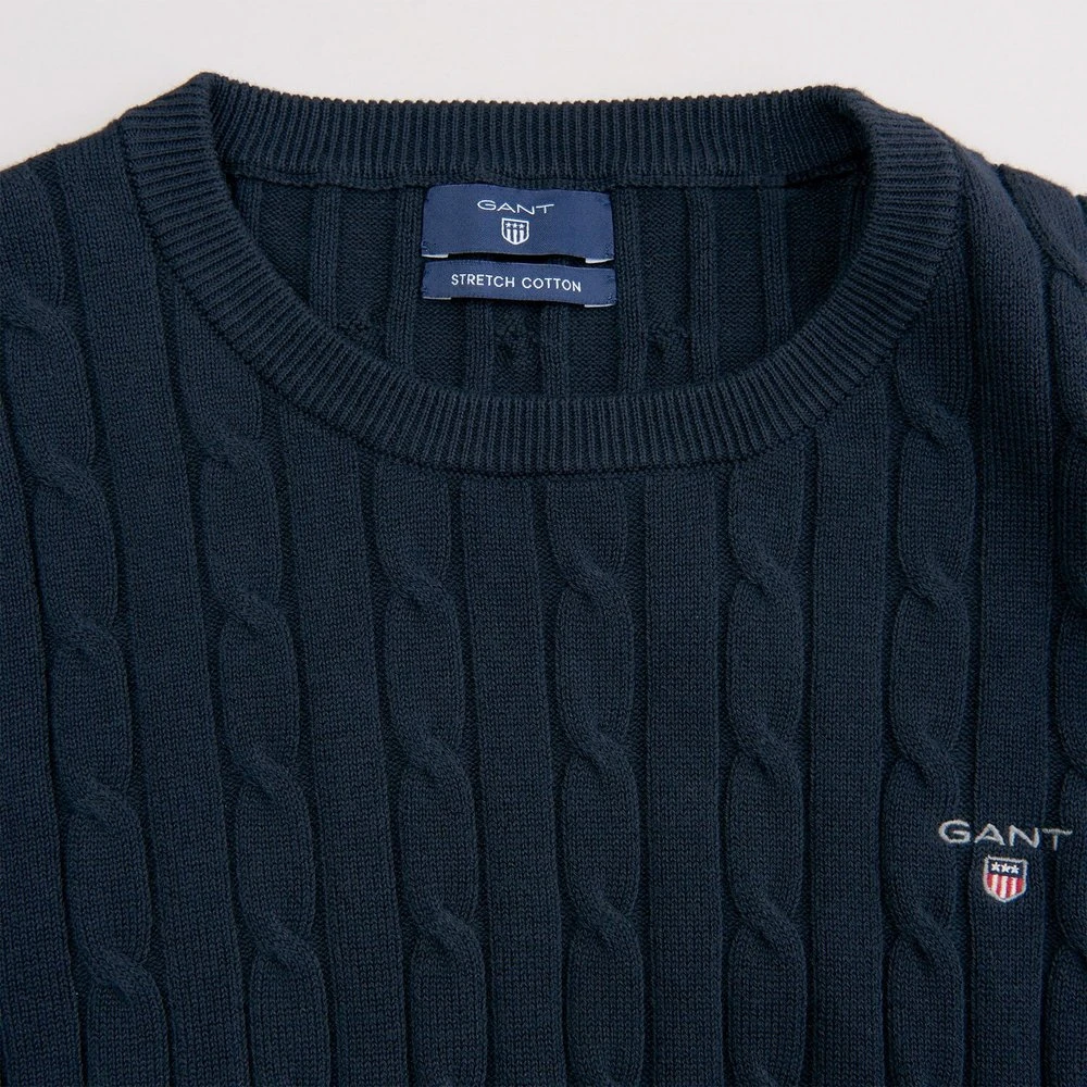 Stickad Tröja fra GANT i mörktmarinblÄ. En hÀrlig pullover med GANT patch broderad pÄ brystet. Trojan passar bÄde til jeans och kostymbyxor. Perfekt for höstgarderoben. MaskintvÀtt, 30 ° fintvÀtt Fit: Normal