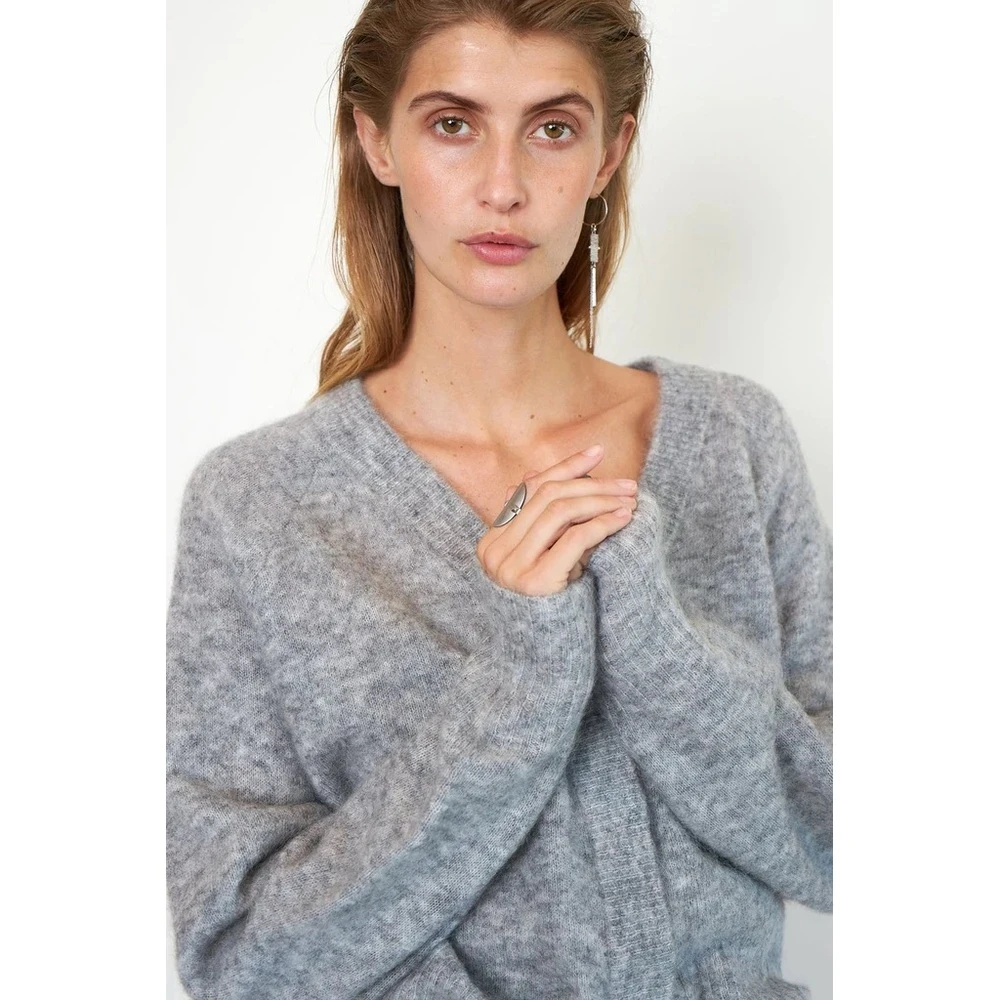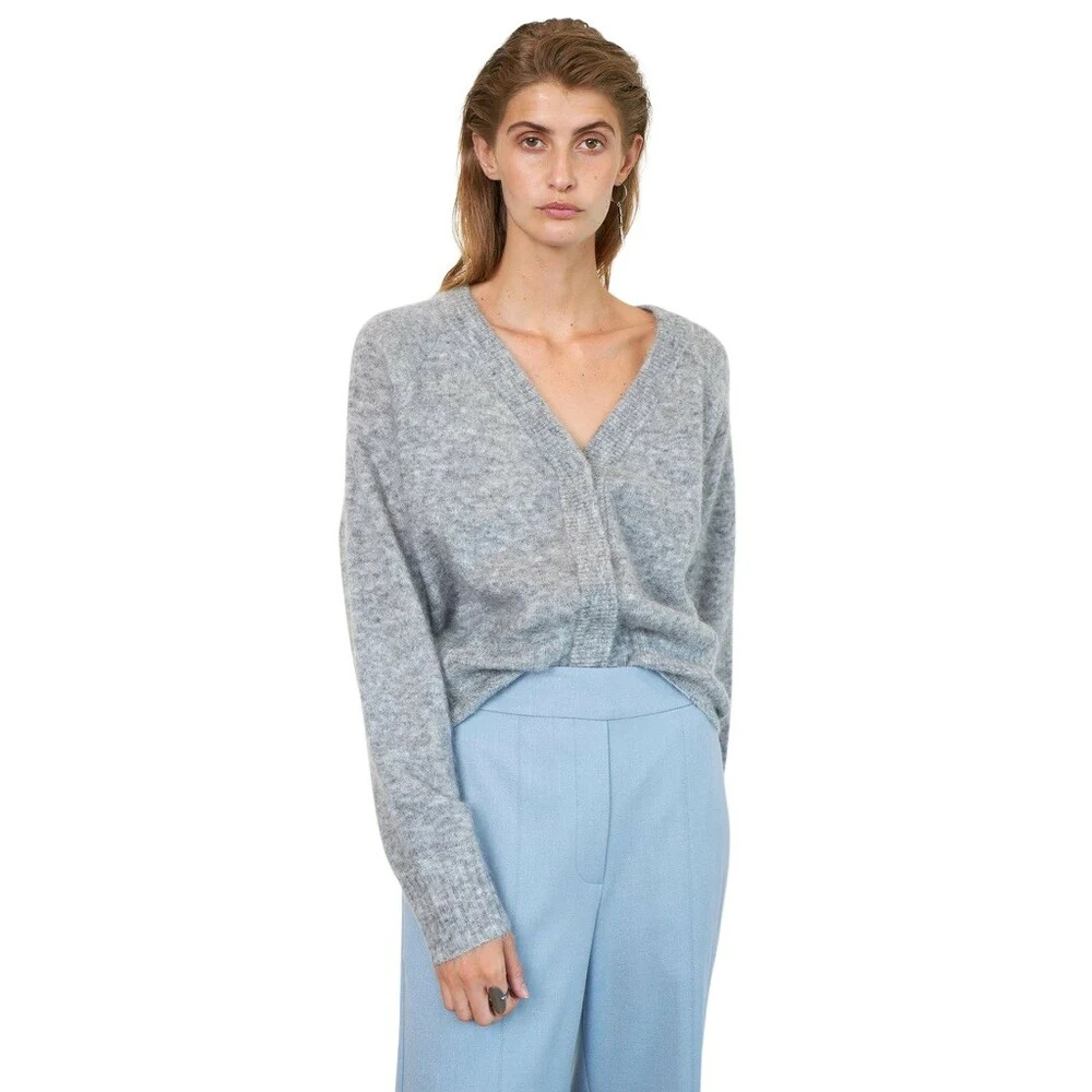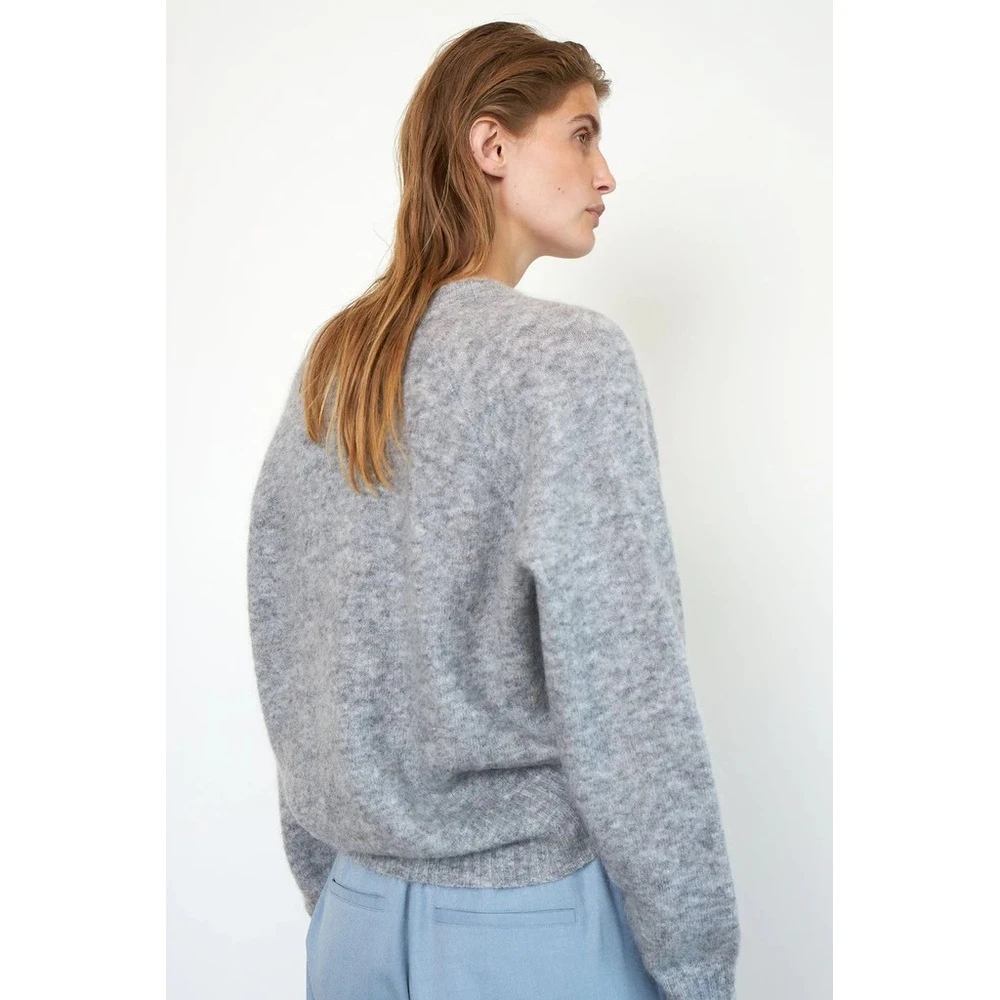 Second Female – Brook Knit Boxy Cardigan Slouchy cardigan. Modellen er laget i en myk og elastisk mohair-ullblanding med lett luftig tekstur. Kommer med v-hals og skjulte trykkknapper. Raglanermer med ribbestrikkede mansjetter. Ribbekant i halsen, stolpen og nederst. Løs, avslappet passform. 34% Mohair 34% Ull 27% Polyamid 5% Elastan