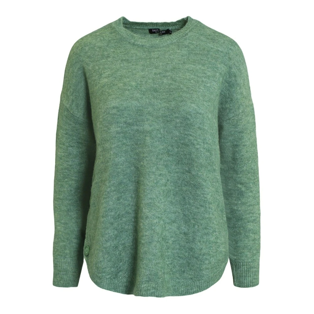 Pullover i en nydelig grønnfarge fra Signature. Den har rund hals. Lengde str M: ca 64cm Innhold: 30% Alpakka, 21% ull, 28% polyester, 18% polyamid og 3% elastan Vask: 30 grader