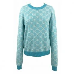 StÞrrelse XL. 2020 sesong. Den blekblÄ jumperen er stylet med den berÞmte logoen til det italienske motehuset, strikket i hvitt. En solid nyanse av turkis i den runde formede nakken, hemmen og ermet ender fullfÞrer det preppy Gucci -monogrammet. Samme design pÄ baksiden. Lengde skulder til hem: 62 cm. Stoff: 51% ull, 49% bomull. Ny med tagger (10/10). Sesong alle sesongene Gucci Gucci Monogram Jumper i blekblÄ bomullsblanding Farge: BlÄtt materiale: Ull / hÄrtilstand: NY