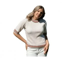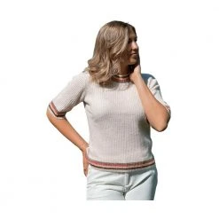 Shanne er en supersøt ribbestrikket topp fra Gustav. Toppen har en avslappet fasong med rund hals og korte ermer. Den har flerfargede striper med lurexdetaljer rundt hals, ermer og nedre kant. Bruk toppen som den er eller bruk den over en hvit skjorte som vest. Passer til enhver anledning. Toppen er normal i størrelsen.