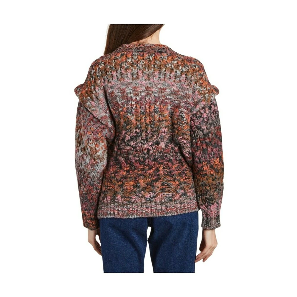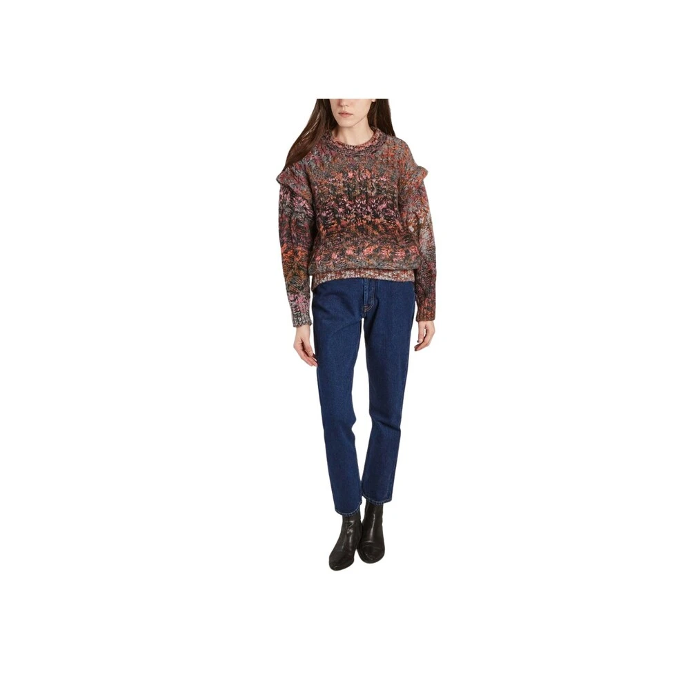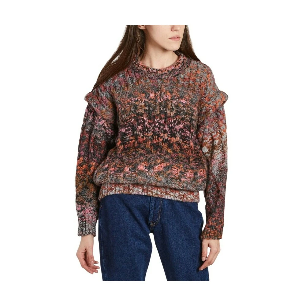Tykk strikket ullgenser i flerfarge. Detaljer på skuldrene. Ulike mønstre gjennom genseren. Vi er sjarmert av Hyko -genseren foreslått av IRO. Det vil matche perfekt med kjærestens jeans og et par hæler inspirert av cowboystøvler for et uformelt elegant utseende.