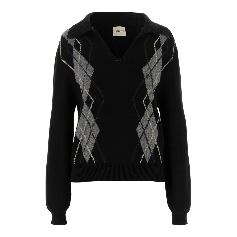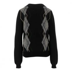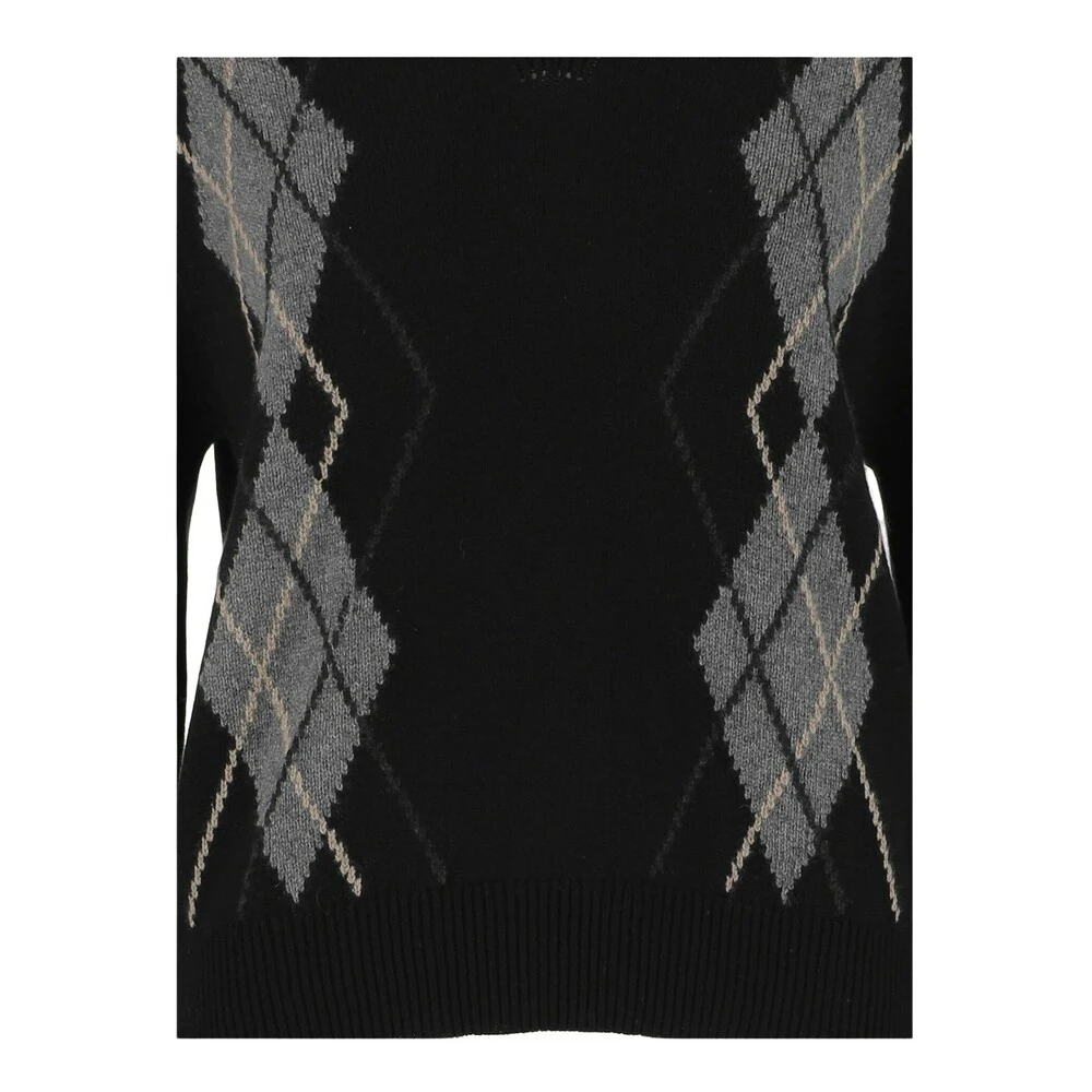 Genser laget av kashmir ribbet krage V-hals grafisk Jacquard strikket mønster ribbet kanter ved mansjetter og hemline svart laget i lia-komposisjon: 100% kashmirgenser laget av kashmir ribbet krage v-hals grafisk jacquard strikk mønster ribbet kanter ved mansjetter og hemlinje svart i lia Sammensetning: 100% kashmir