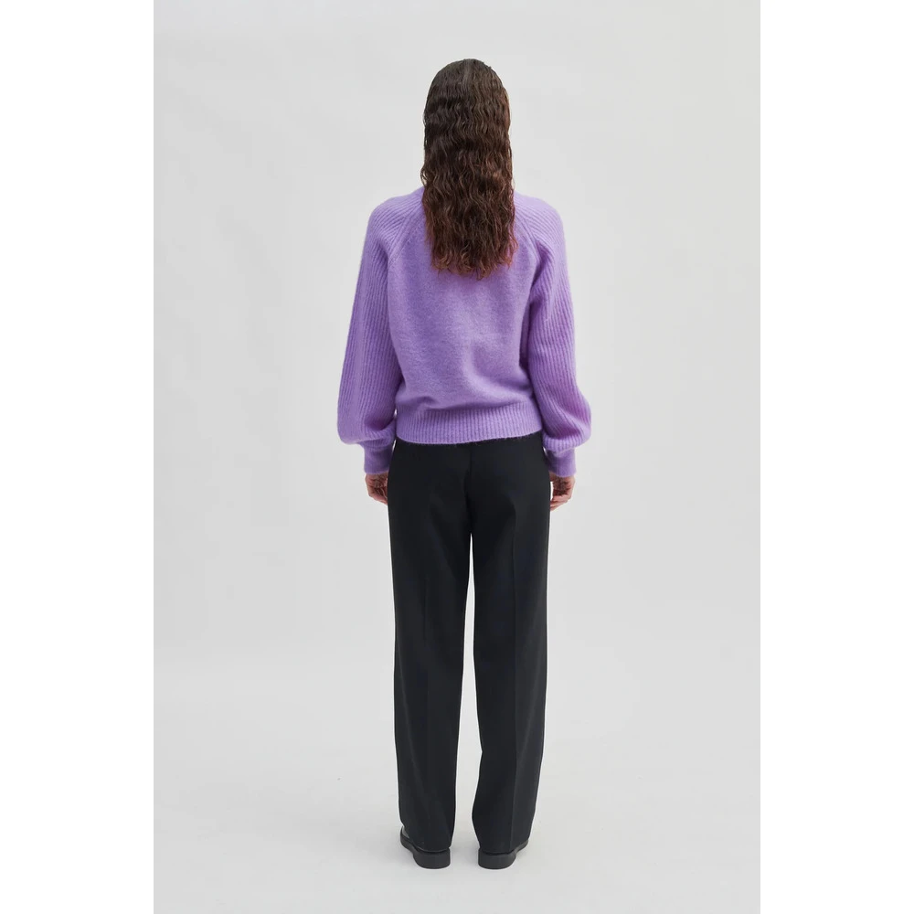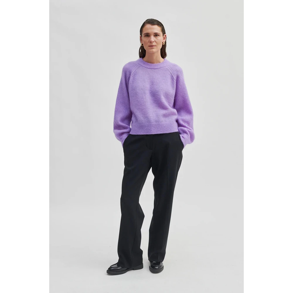Brookline Knit O-Neck fra Second Female. Deilig strikkegenser i en nydelig lillafarge. Genseren har lange voluminøse ermer, rund hals og delikat ribbestrikk i halsen, nederst på ermene og nedre kant. Brookline Knit O-Neck er perfekt å bruke utover høsten, både til bukse og over kjoler. Strikkegenser Lange ermer Rund hals Ribbestrikk Innhold: 34% Mohair 34% Wool 27% Polyamide 5% Elasthane