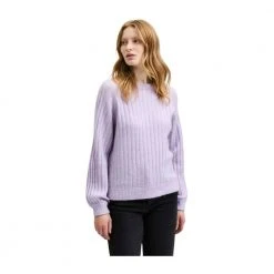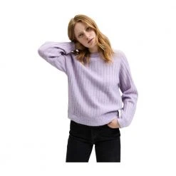 VÃ¥re must-haves for sesongen? En strikket genser i nydelig dus lilla farge i mohairblanding som holder deg varm, uansett vær. Dette stilige plagget har et ribbet design som holder det uformelt med raglanskuldre som gir en perfekt, ledig passform. Disse vil se bra ut med et par figursydde bukser og boots med hæl – ideell for kontoret. – Rund krage – Raglanskuldre – Lange ermer – Finribbede kanter – Rett fald – Regular fit Dette produktet er laget av ansvarlig utvunnet ull hvor dyrevelferd har blitt respektert. 39% Ull, 24% Polyester, 20% Mohair, 15% Nylon, 2% Elastan Vask for hÃ¥nd