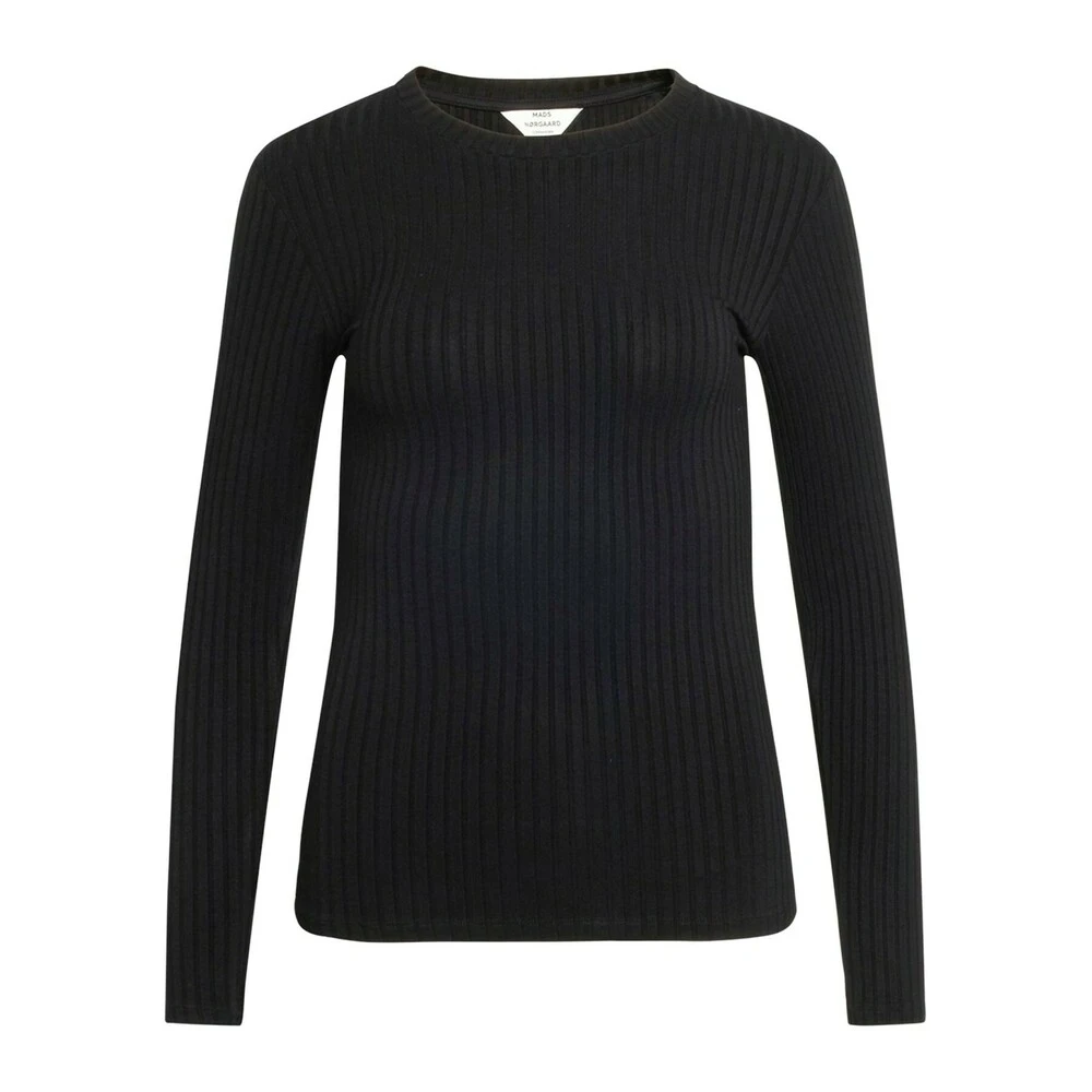 Deilig tettsittende bluse fra Mads Nørgaard med lange ermer og rund hals. Perfekt for bases garderobe. · Fit: Tettsmontering · Mål: Str. S: Brystmål: 35 cm. X 2. lengde: 59 cm. · Modell: 5×5 Solid Tuba Bluser 200165 Svart · Kvalitet: 92% Viskose, 8% Elastan · Vask: 30 grader Maskinvask