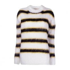 Spunnet fra en mohairblanding med en børstet finish, er Marni`s Crew-hals-jumper dekorert med et horisontalt stripemønster i hvite, svarte og gule fargetoner. – Lange ermer- ribbet mansjetter- ribbet hem-laget i Italia