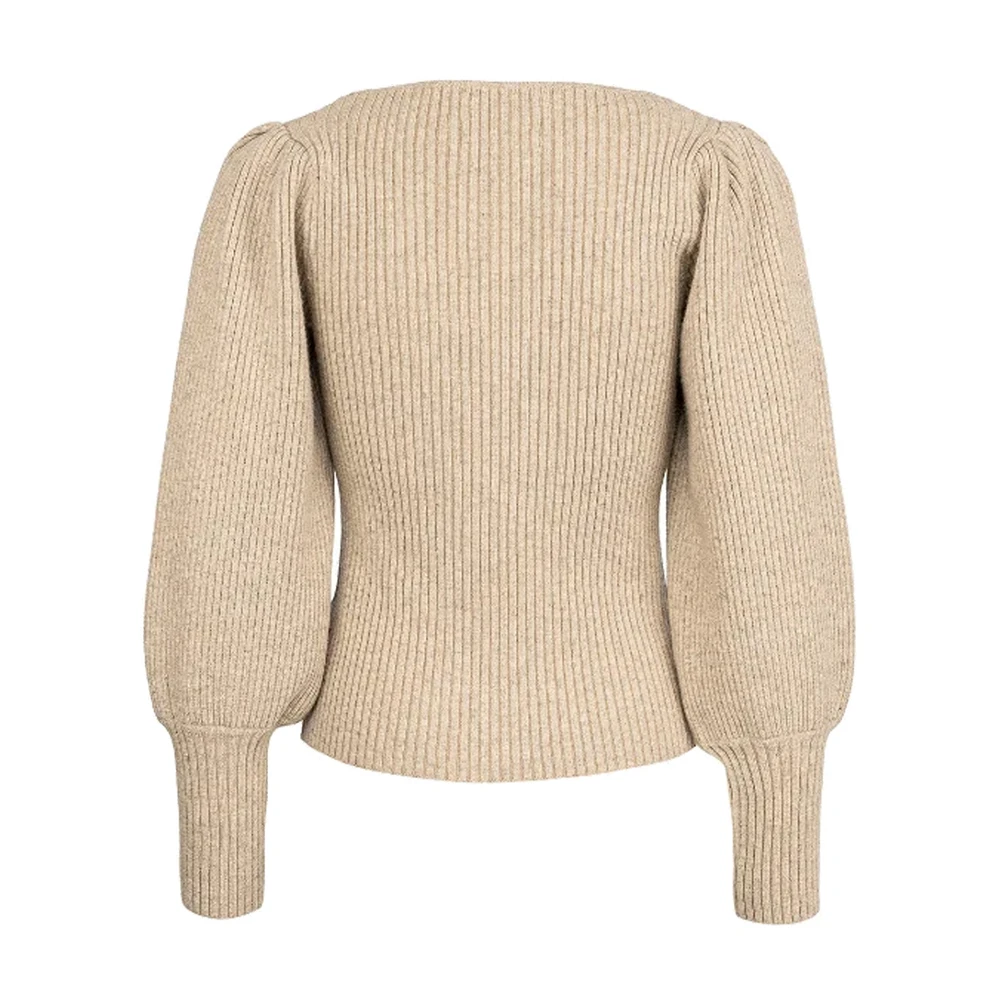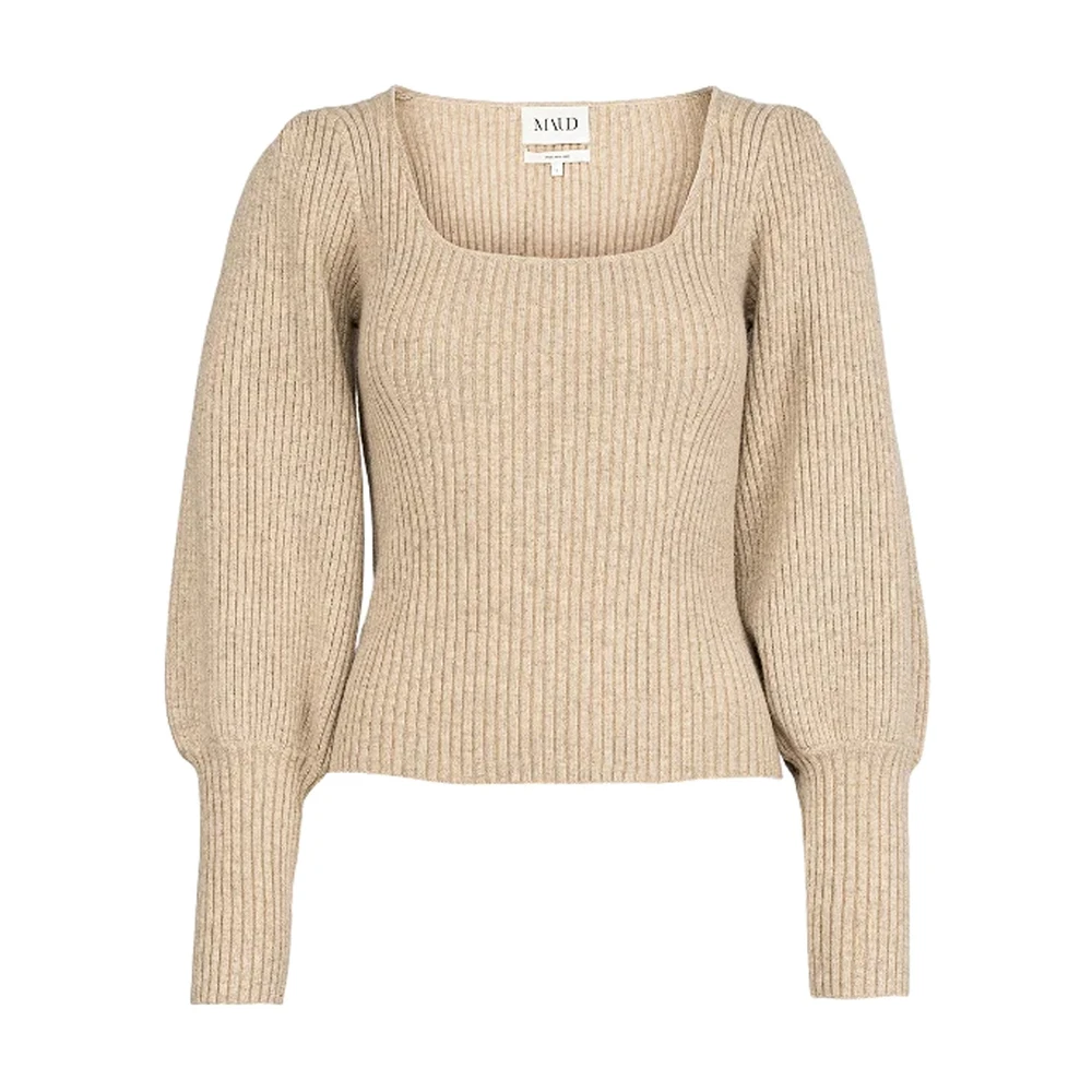 Allie Topp fra Maud. Allie er en nydelig strikkegenser i ribbestrikk med voluminĂžse ermer. Materiale: 35% ull, 35% polyester og 30% nylon