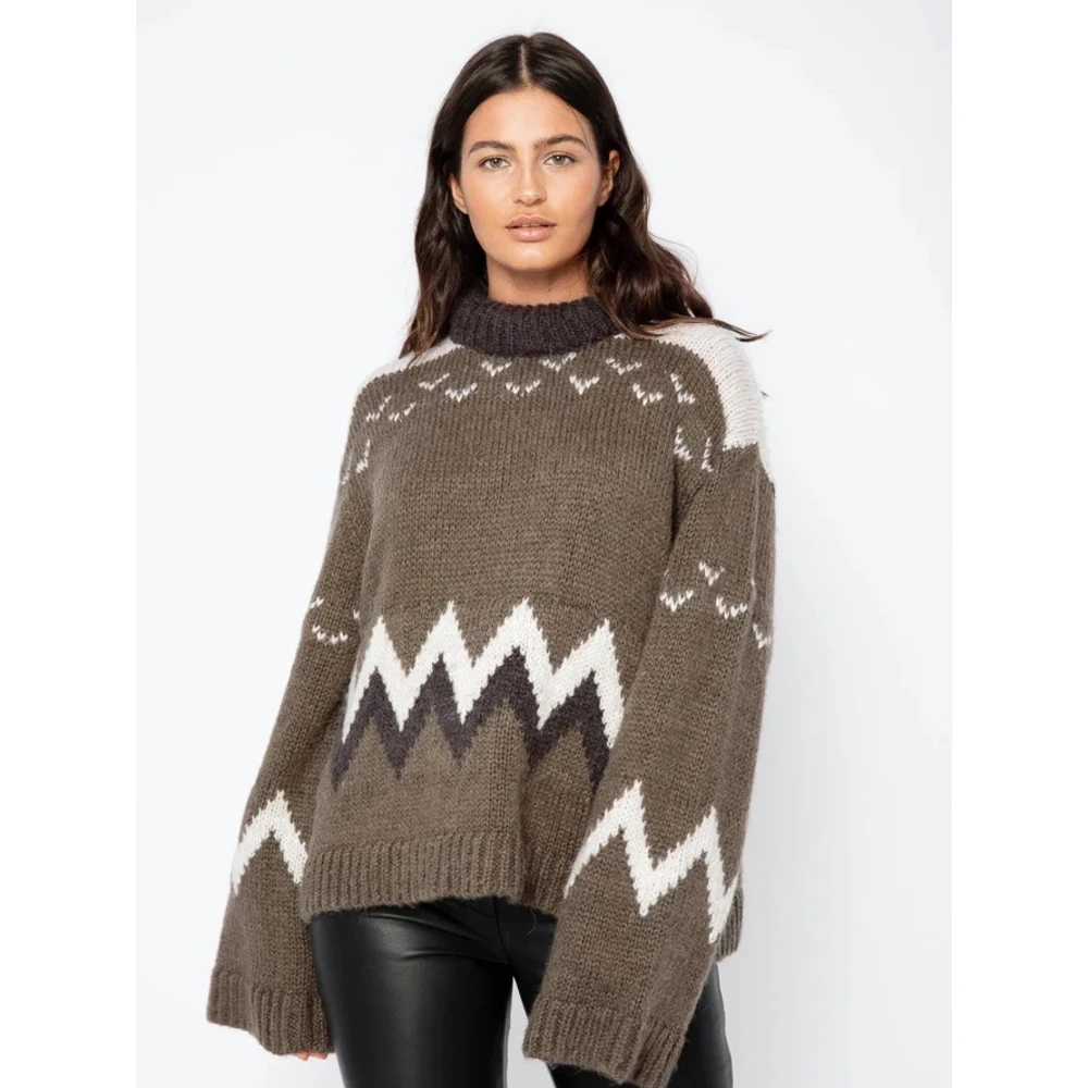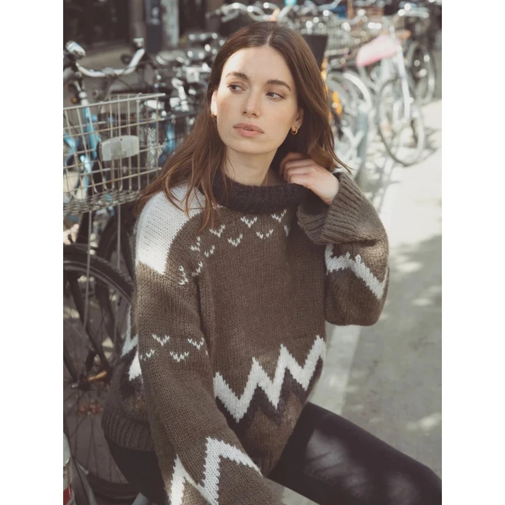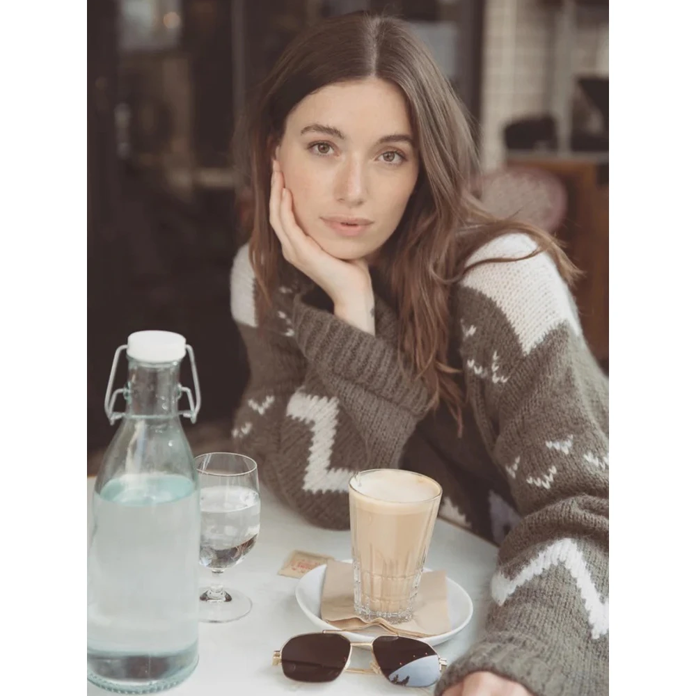 Morning Knit – Army Melange fra Camilla Pihl En myk , vid genser laget i en deilig alpakka og ull kvalitet. Materiale: 33% Alpakka, 32% ull, 35% Polyamid Størrelse: Stor, gå gjerne ned en størrelse.