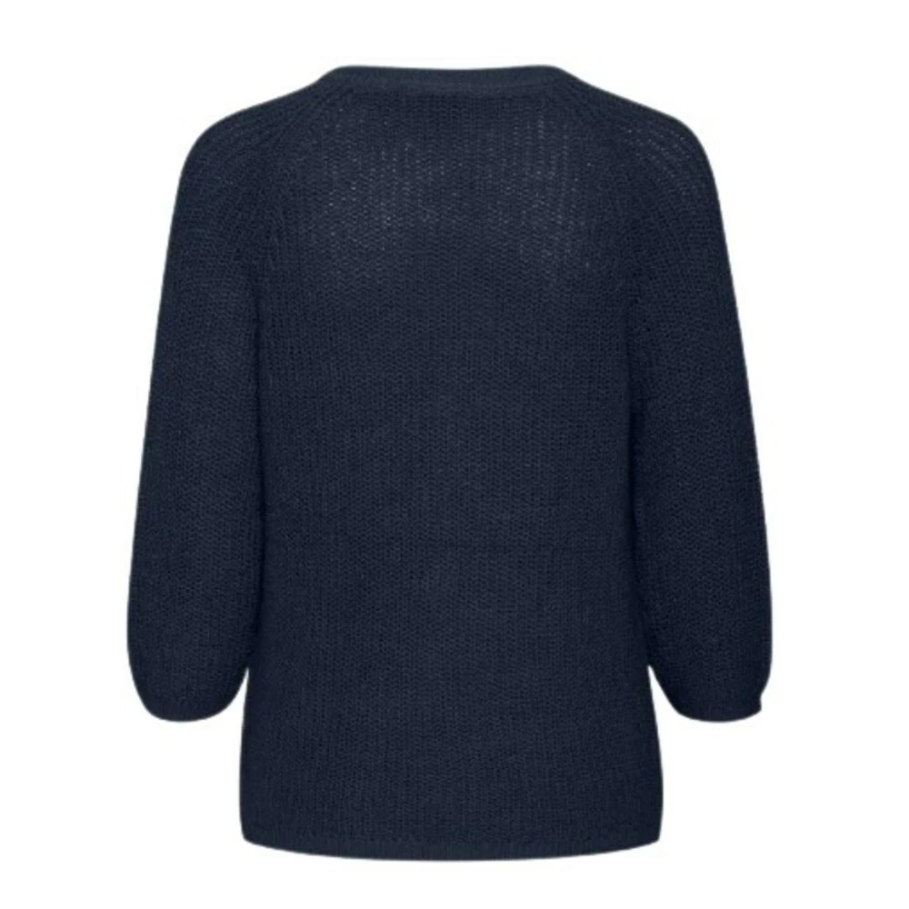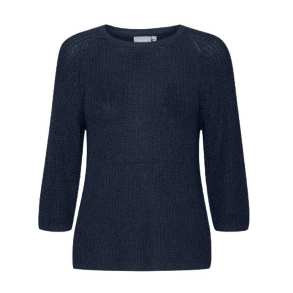 Strikkegenser med rund hals og 3/4 ermer. Ribbestrikket rundt hals, ytterst pÄ ermene og nederst langs kanten av genseren.  Normal i stÞrrelsen Materiale: 50% bomull og 50% lin