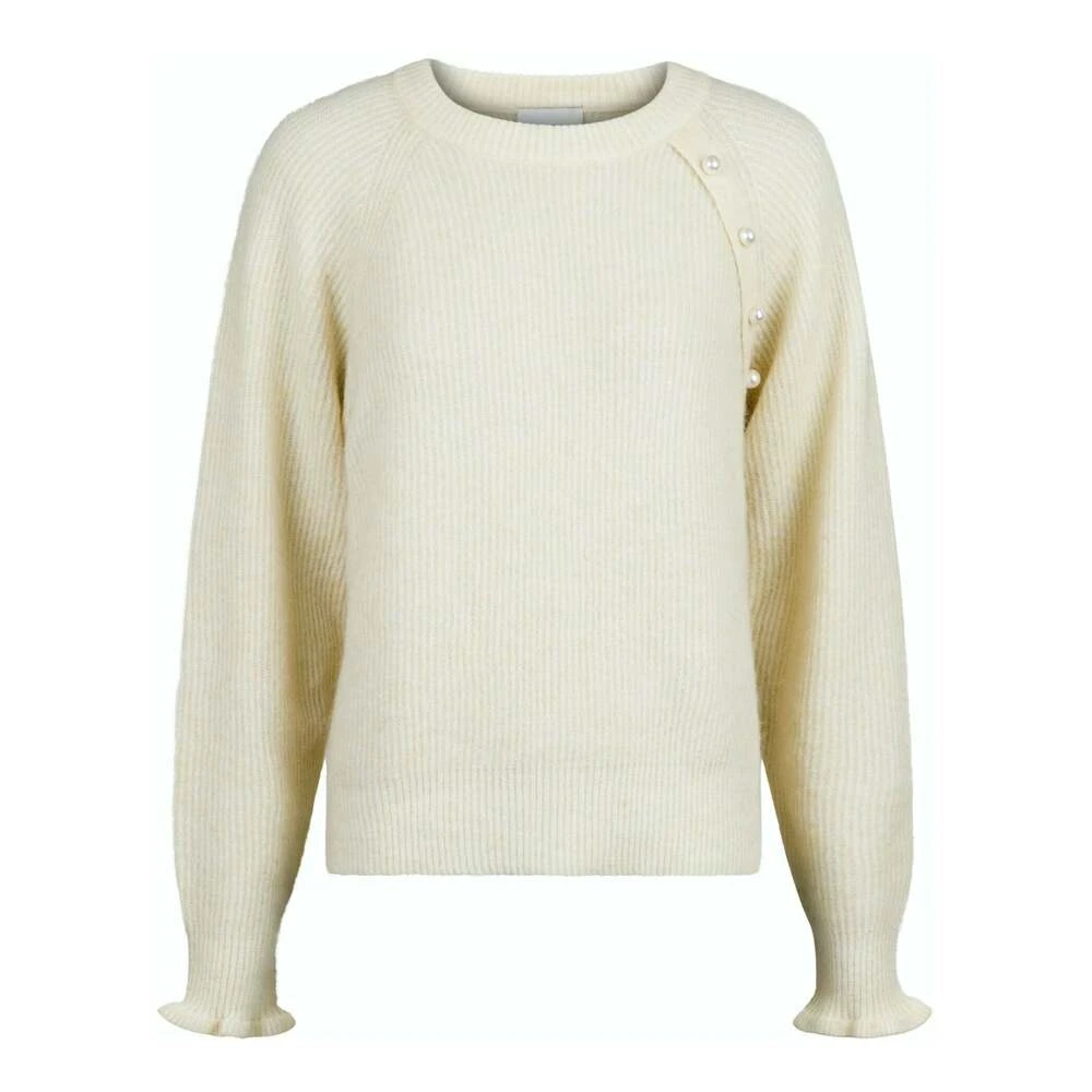 Asli Knit Blouse fra Neo Noir. Fin strikkegenser i en myk ullblanding med volangdetaljer i ermene. Perleknapper på forsiden for feminint utseende. En nydelig genser med både jeans og skjørt.Normal i størrelsen.
