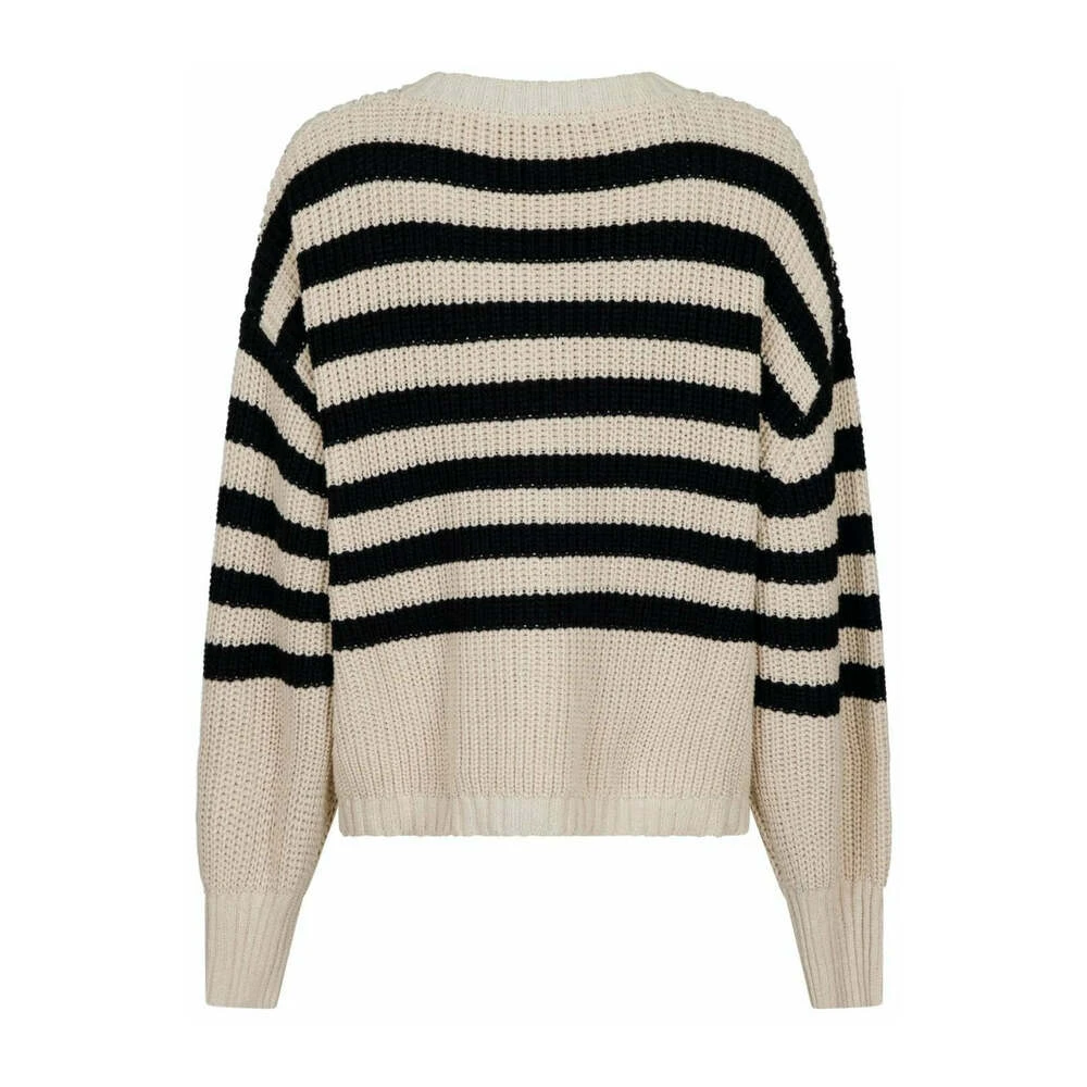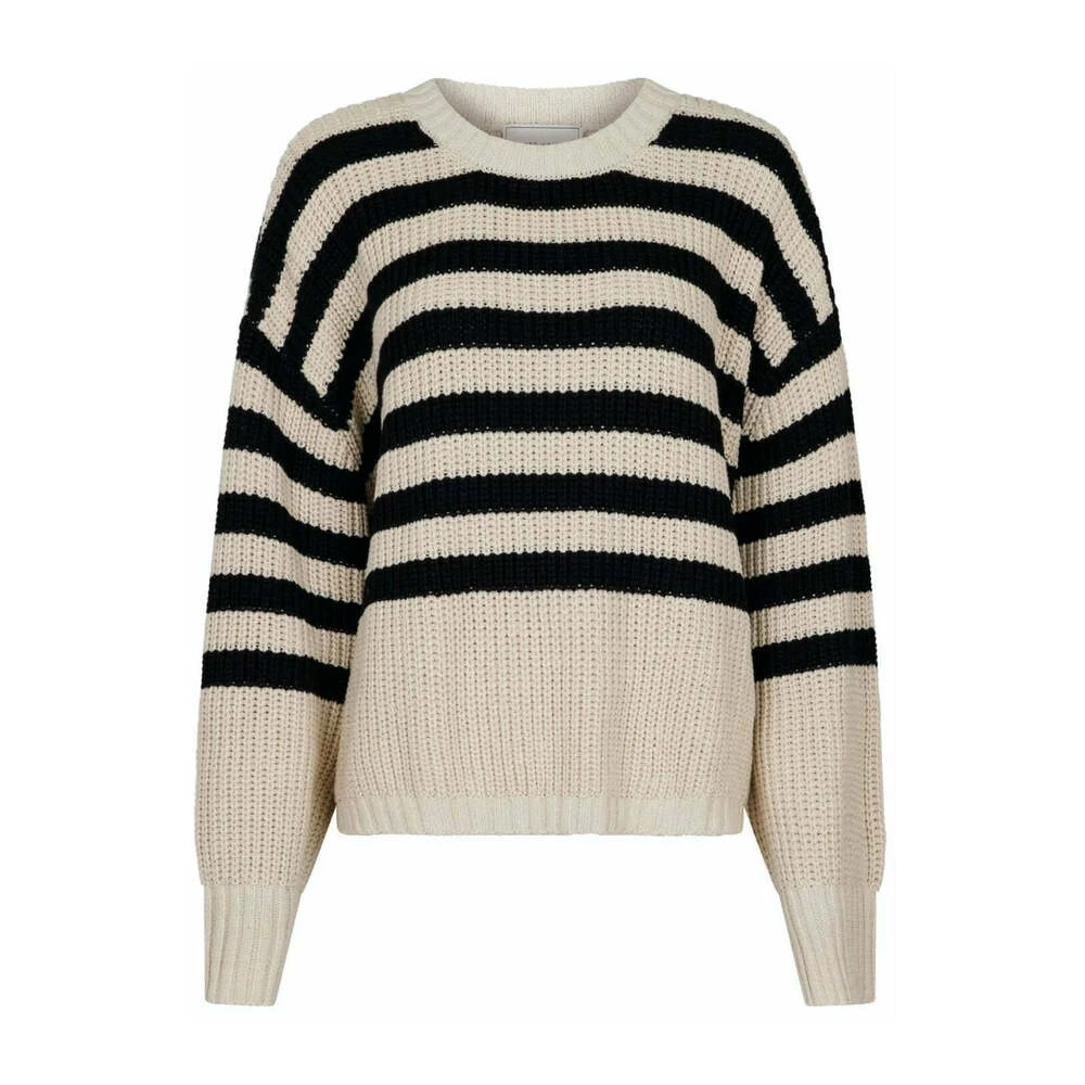 Avkjøl løs tykke strikkede bluse, med svarte striper.