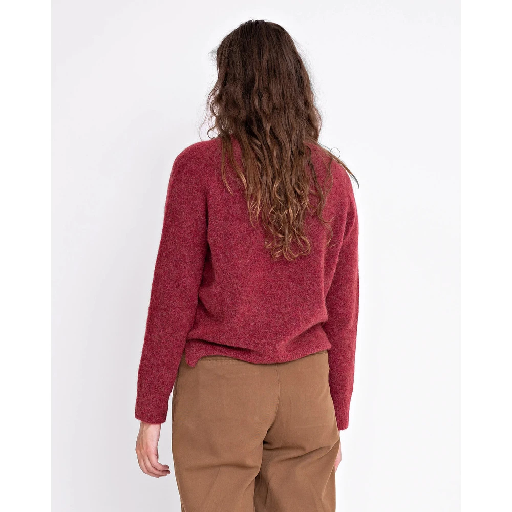 Avslappet mohairgenser med bred båthals og sidesplitter nederst.