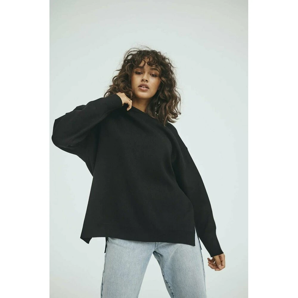 Tøff genser med rund hals og lange ermer. Den har splitter nede i sidene og har en oversized fasong.