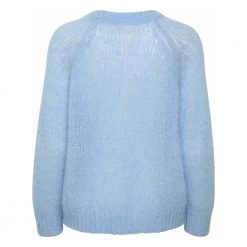 Rhonapw Pullover fra Part Two. Vi elsker å pakke oss inn i gode strikkegensere når dagene blir kaldere, og vi elsker Rhonapw Pullover. Genseren er strikket i et tynt, fluffy garn som gjør genseren varmende, men fortsatt lett og luftig. Rhonapw Pullover har 3/4 lange raglanermer med ribbestrikket mansjett. Den har en ribbestrikket, rund hals og ribbestrikket fald. Passformen er rett, og genseren er perfekt å bruke med dine favorittbukser eller en pent skjørt. Materiale: 70% mohair, 18% ull, 12% polyamid