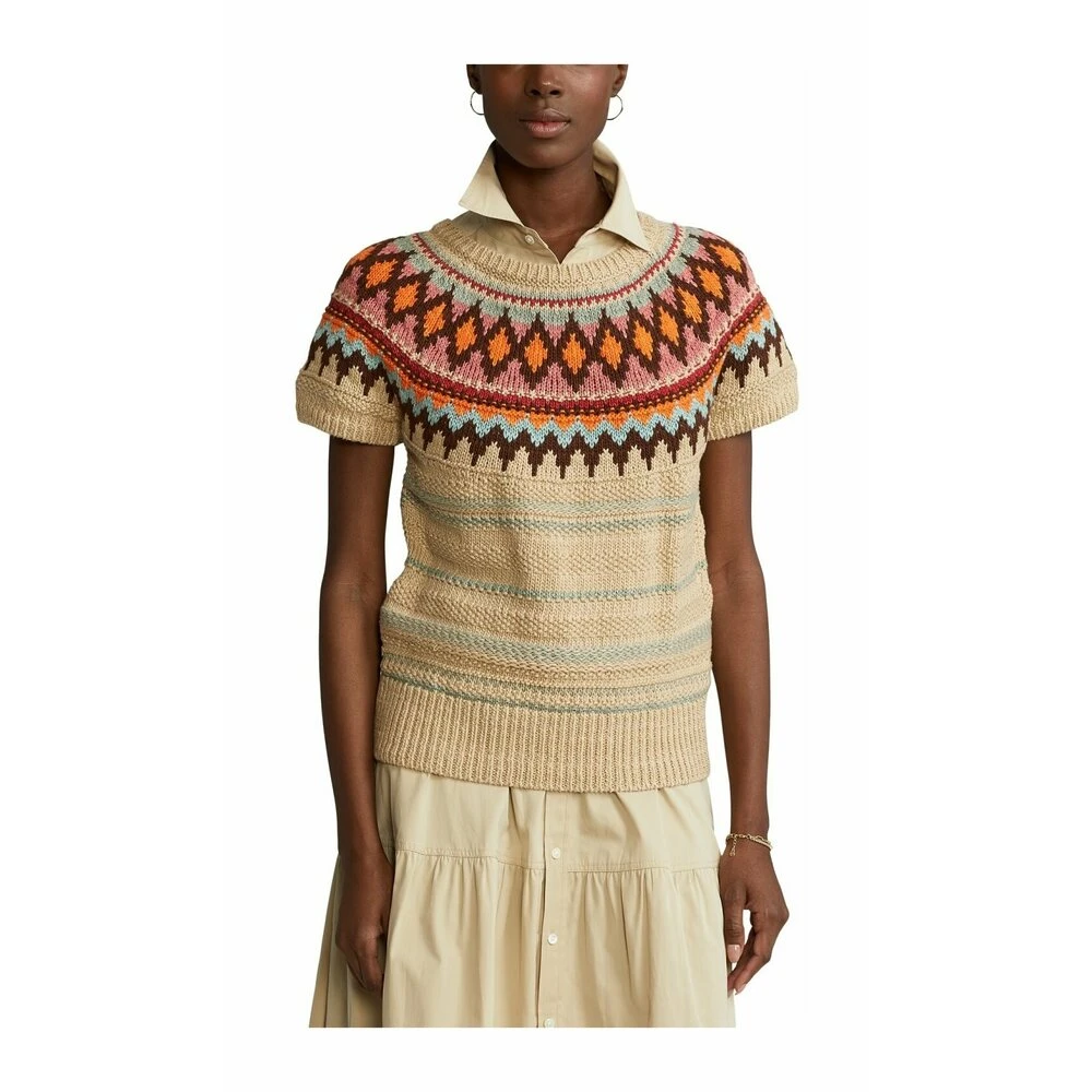 Et fargerikt jacquard-diamantmotiv rammer inn halsen pĂ„ denne kortermede genseren, mens en rekke strikketeknikker legger til tekstur og dimensjon. Dens tykke blanding, med bomull og lingarn, inkluderer trĂ„der hentet fra Italia og Japan. Slank passform. Ment Ă„ slĂ„ i hoften. StĂžrrelse medium har en kroppslengde pĂ„ 22Ÿ. Kroppslengden er tatt fra det hĂžyeste punktet pĂ„ skulderen. Rund hals. Korte raglanermer med ribbestrikkede armbĂ„nd. Til og med ventilert ribbestrikket kant. 64 % bomull, 33 % lin, 3 % annet fiber HĂ„ndvask eller renseri. Importert. Italiensk og japansk garn. Modellen er 510/178 cm og bruker stĂžrrelse small.