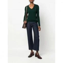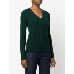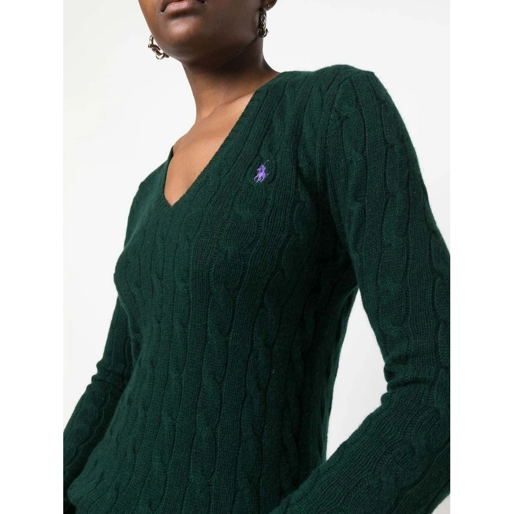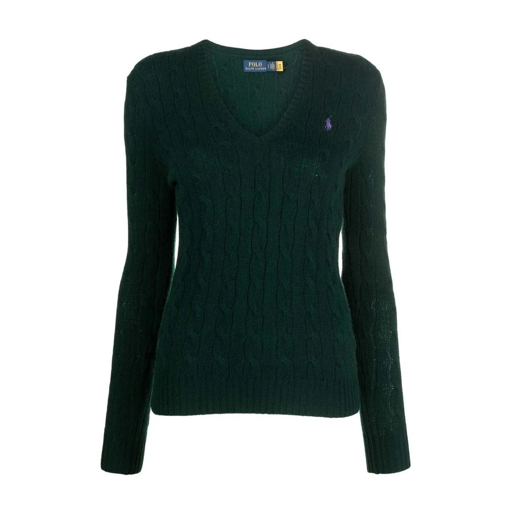 Polo Ralph Lauren Gensere Grønne ribbet V-hals lange ermer med ribbede mansjetter ribbet hem signatur brodert ponni i venstre bryst Modellen har på seg størrelse s 90% ull, 10% kashmir laget i Kina