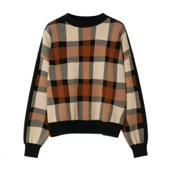 Genseren har en rund utringning og brede skuldre med nedlagte skuldersømmer. Ermene er lange og laget i en løs, men den elastiske mansjetten samler ermene på håndleddene. De nedlagte skuldersømmene gir genseren et mer avslappet utseende. Genseren er designet slik at den går perfekt sammen med Tendai Check Knit -skjørtet.