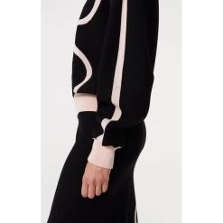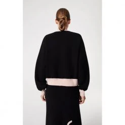 Genseren har en rund utringning og brede skuldre med nedlagte skuldersÞmmer. Ermene er lange og laget i en lÞs, men den elastiske mansjetten samler ermene pÄ hÄndleddene. De nedlagte skuldersÞmmene gir genseren et mer avslappet utseende. Genseren er designet slik at den gÄr perfekt sammen med Orma strikket skjÞrt.
