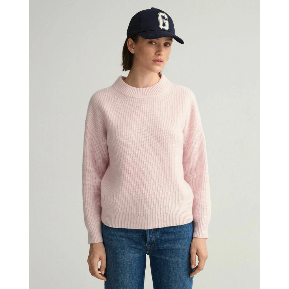Navn: GANT Wool rib C-neck Farge: Rosa/ Silver peony Beskrivelse: Denne genseren med rund hals er laget i en myk ullblanding og har et elegant, tidløst utseende. Kutt i en avslappet, vid passform som gjør det enkelt å legge på lag, gjør dette plaggets uanstrengte fasong godt egnet til å ha på seg halvt gjemt inn i en skarp bukse, eller mer uformelt med denim. Materiale: Lammeull 80%, Polyamid 20%